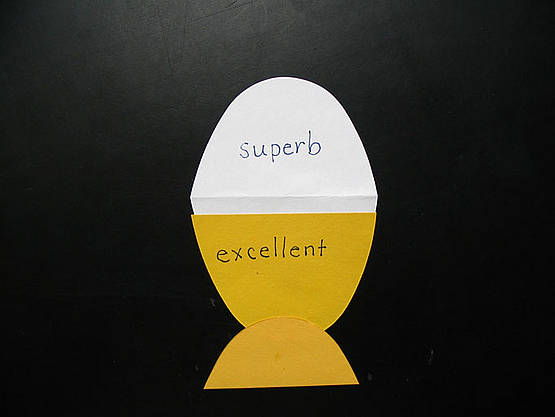 Make tulips with one or both parts of the cracked egg. Paste small pictures from an old spelling or phonics book on the flowers and write the words on the stems. Put the flowers in a vase for students to practice their words and self-check their answers.