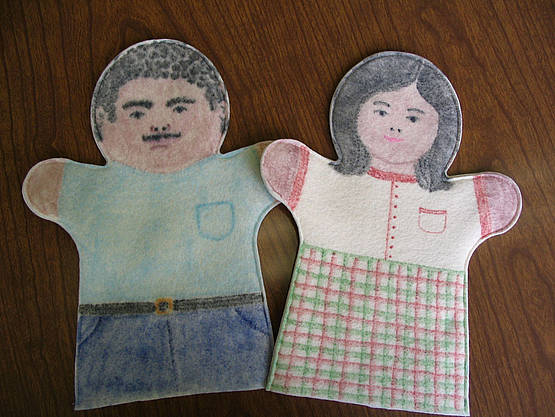 These felt puppets have removable clothing. Since the puppet body is so flexible, the clothing pulls on easily, without the need for fasteners. With a few simple garments, puppets you already have can be transformed into Bible characters.