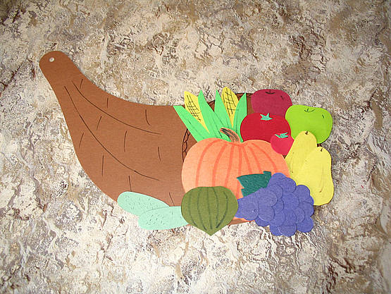 Using half a visor, you can make a cornucopia for Thanksgiving. Add a full fraction circle for the opening. Fill it with small fruit and vegetable shapes.