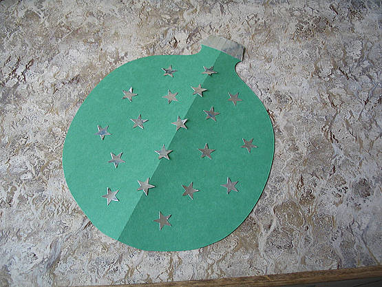 Now for the piece left over from the turtle. (You were wondering why the fold had to be on a particular side, right?) Trim off the knob on one end. Make a foil cap for the other end. Decorate your giant tree ornament as desired.