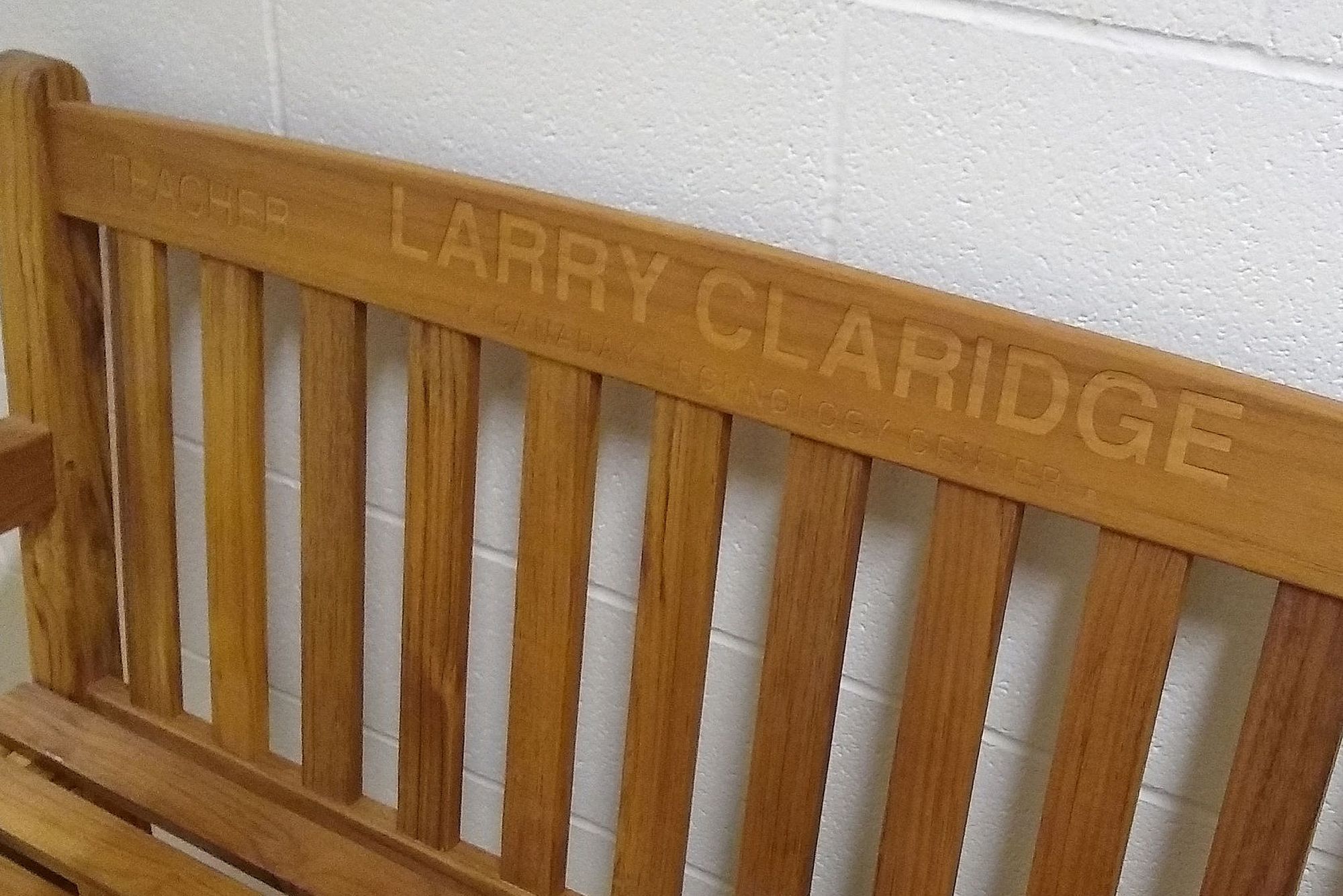 On April 27, 2019, during Walla Walla University homecoming weekend, the Department of Technology unveiled a teak wood bench and plaque in honor of Larry Claridge, a former WWU technology teacher and long-time Walla Walla resident.